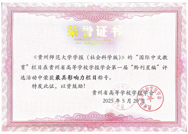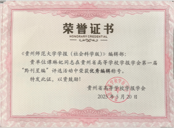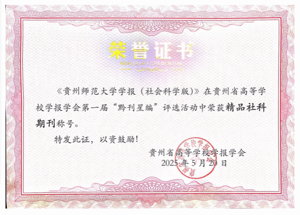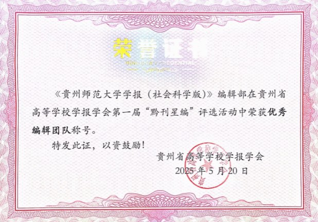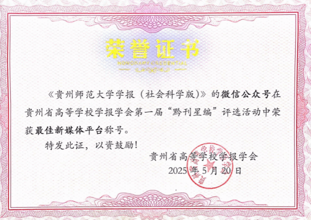 《贵州师范大学学报(社会科学版)》获奖证书