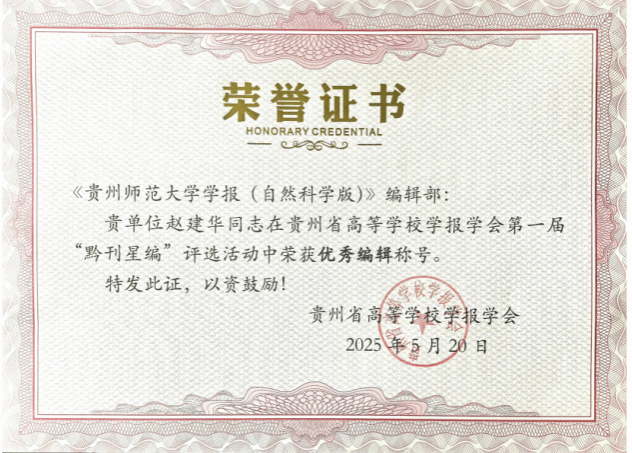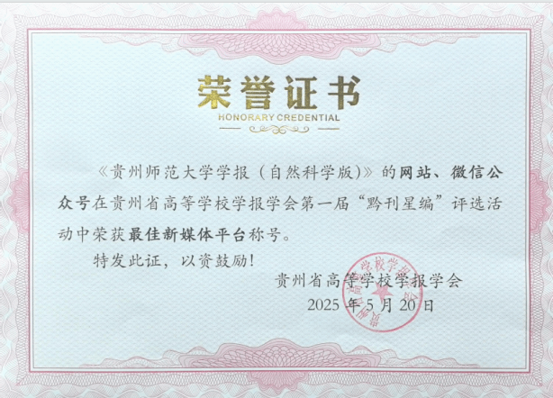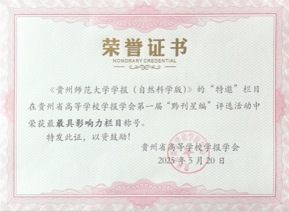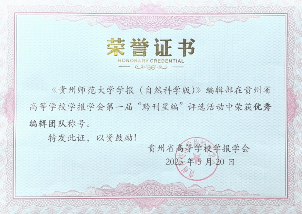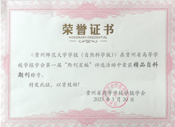 《贵州师范大学学报(自然科学版)》获奖证书