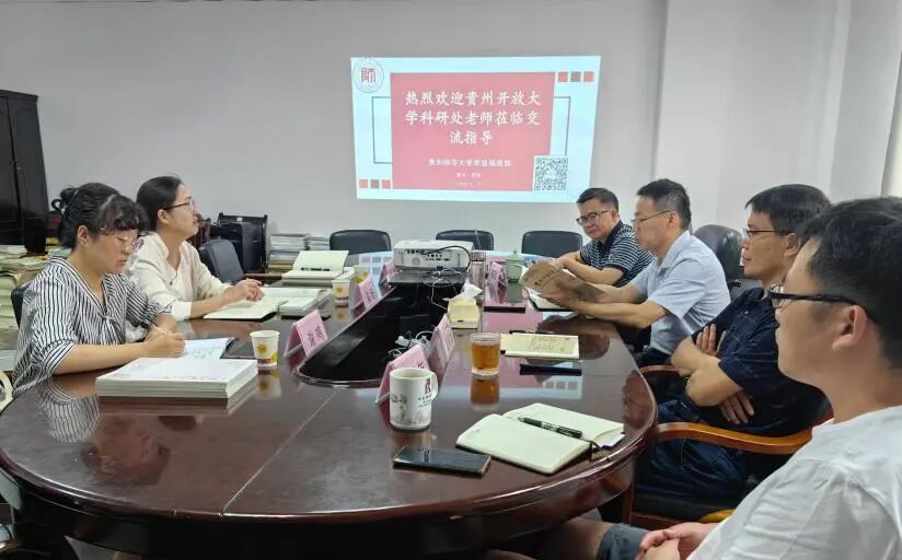 为推动《贵州开放大学学报》质量全面提升,9月19日上午,《贵州开放大学学报》编辑部到贵州师范大学学报编辑部学习交流。《贵州师范大学学报(社会科学版)》执行主编颜同林、副主编韦正富,自然科学版执行主编高荣海等与我校学报编辑部就学术期刊建设与发展进行交流。